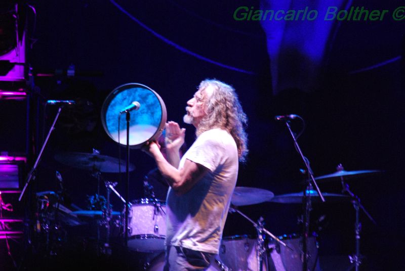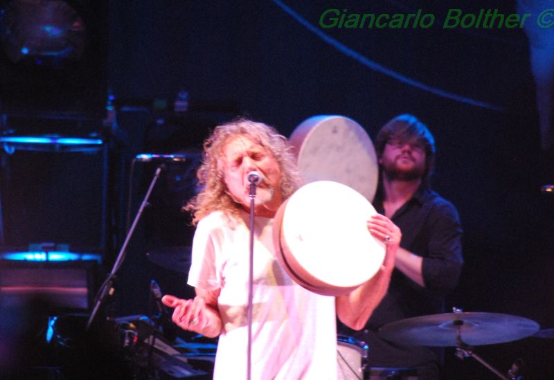 La prima cosa che mi ha sorpreso di questo concerto è stata l’energia che ancora dimostra Plant, ha tenuto il palco per circa due ore senza un attimo di cedimento, certo l’età c’è, si vede, non viene nascosta o mascherata, ma che energia, quanta voglia ancora di starci e di intrattenere il suo pubblico, un Plant affabile, entusiasta, pieno di voglia di fare e di suonare. Brani vecchi e nuovi si sono mescolati, intersecati, come un lungo flirt fra passato e presente e tutto è sembrato assolutamente coerente. |